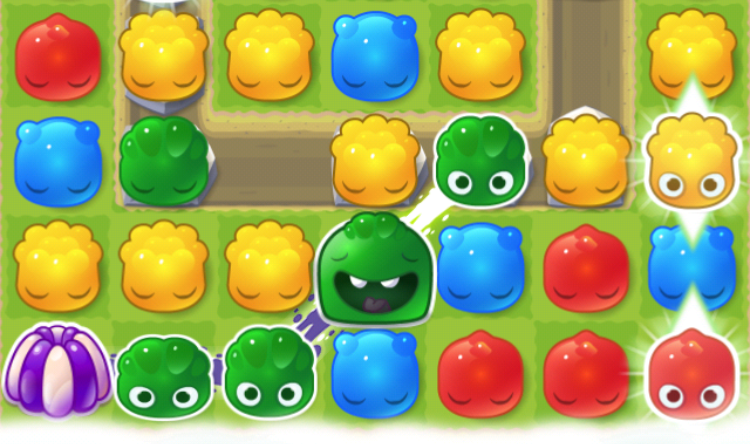 Every time you include a Hungry Jelly in a combination, it'll change color. So if you’re struggling to connect it to the pudding, you can change its color by including it in a line combination.