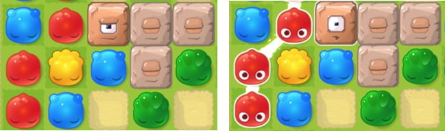 These pesky creatures block the Jellys' path creating trouble from level 501! There are three types of them: the active ones, with their eyes open, the sleepy ones with the eyes shut and the dull ones, no eyed.
