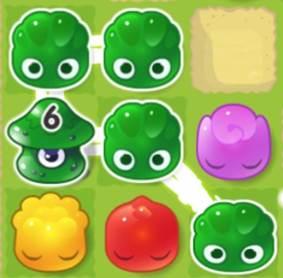 Eliminate the Mushrooms Bombs before the timer runs out by connecting them to similar coloured Jellys.