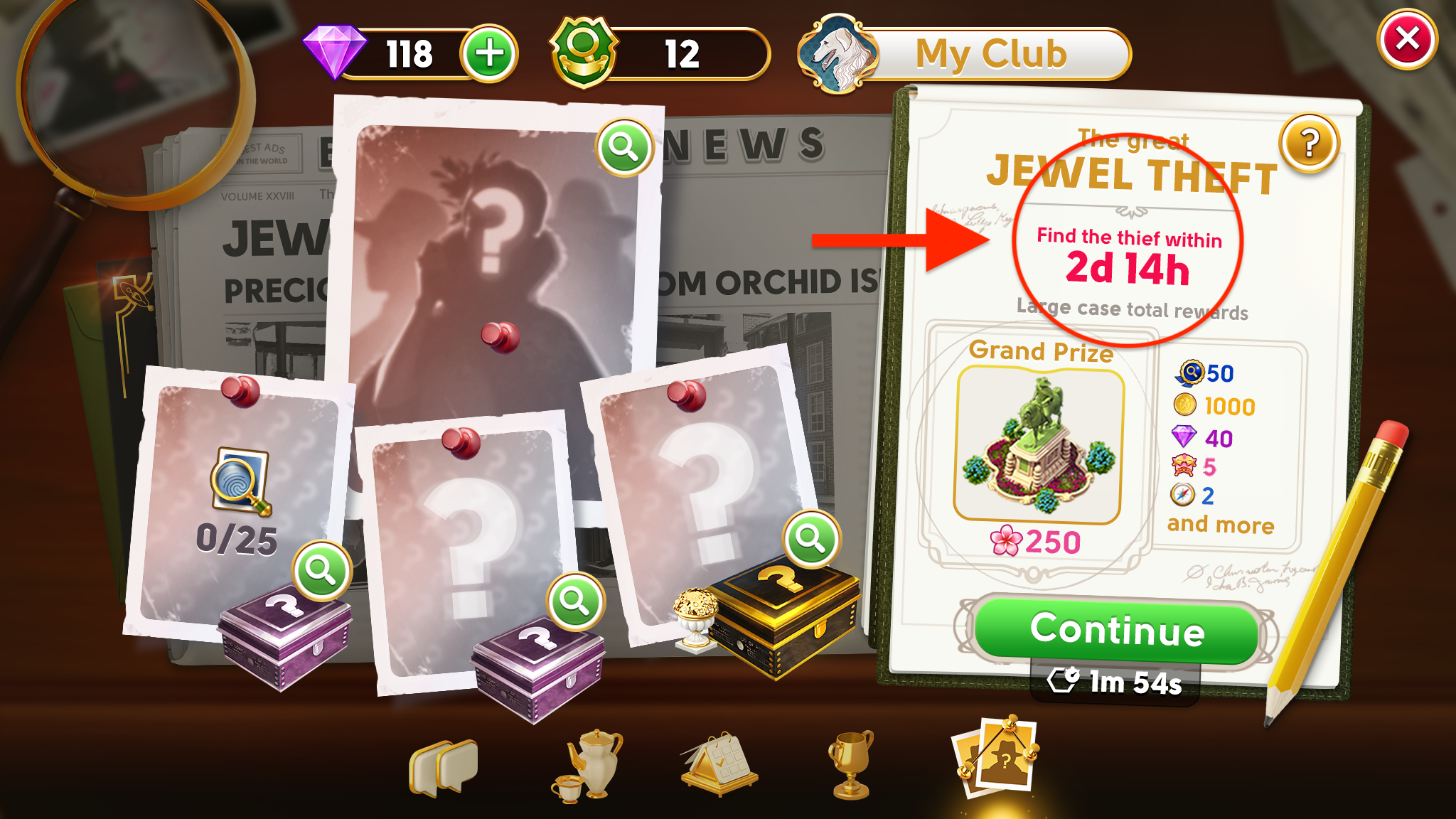 If you leave your club in the middle of a Club Mysteries event and have unclaimed sector or evidence rewards, you will not be eligible to claim the rewards. To avoid losing the fruits of your hard work, we recommend you stay in your club.