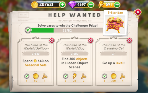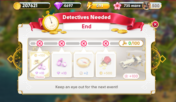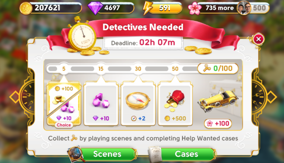 Detective Needed Events in June's Journey are time-limited events where you have the chance to earn extra rewards including Diamonds, Coins, and Compasses.