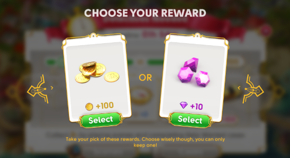 Some reward cards show two types of rewards. These are instances where you get to choose your reward! Make sure you pick carefully: you only get one reward and you won’t be able to change your mind.