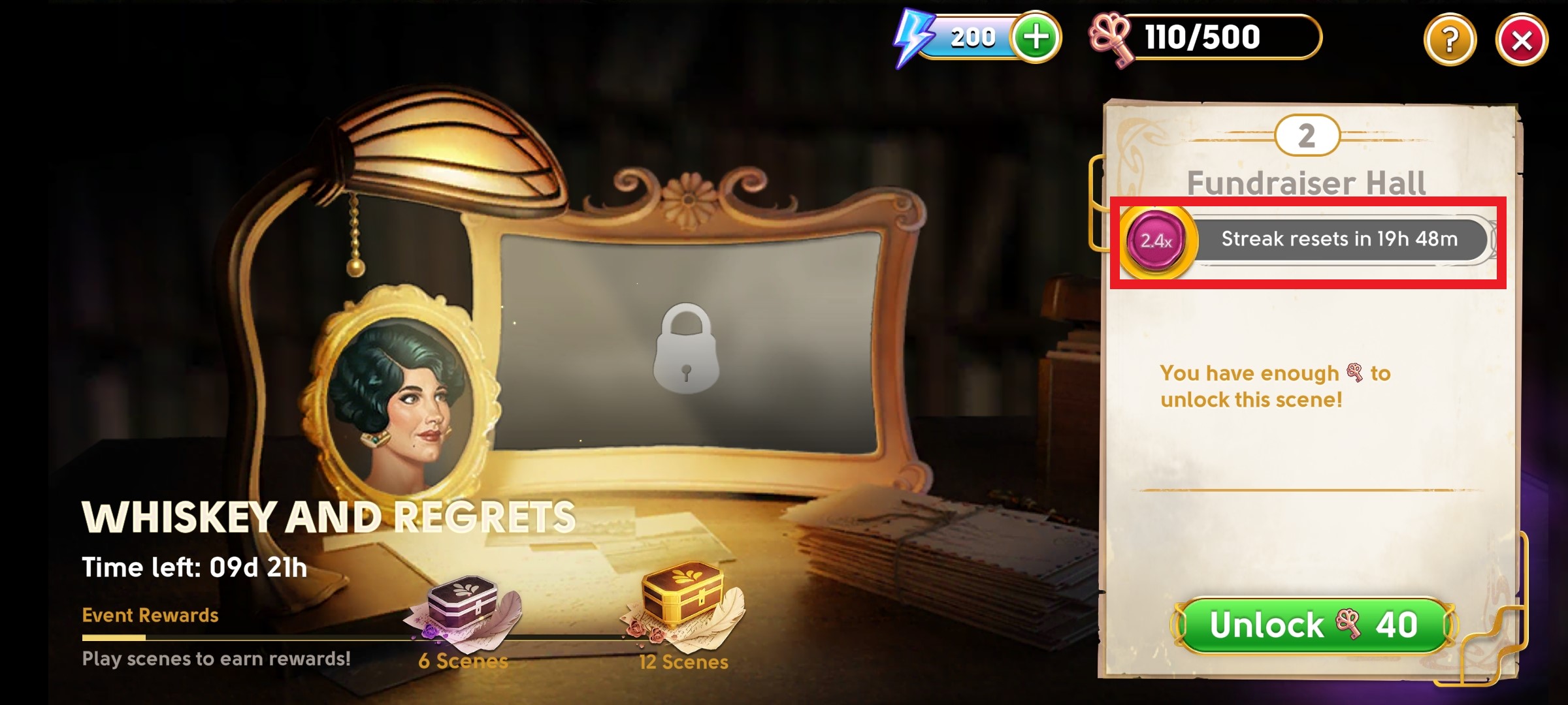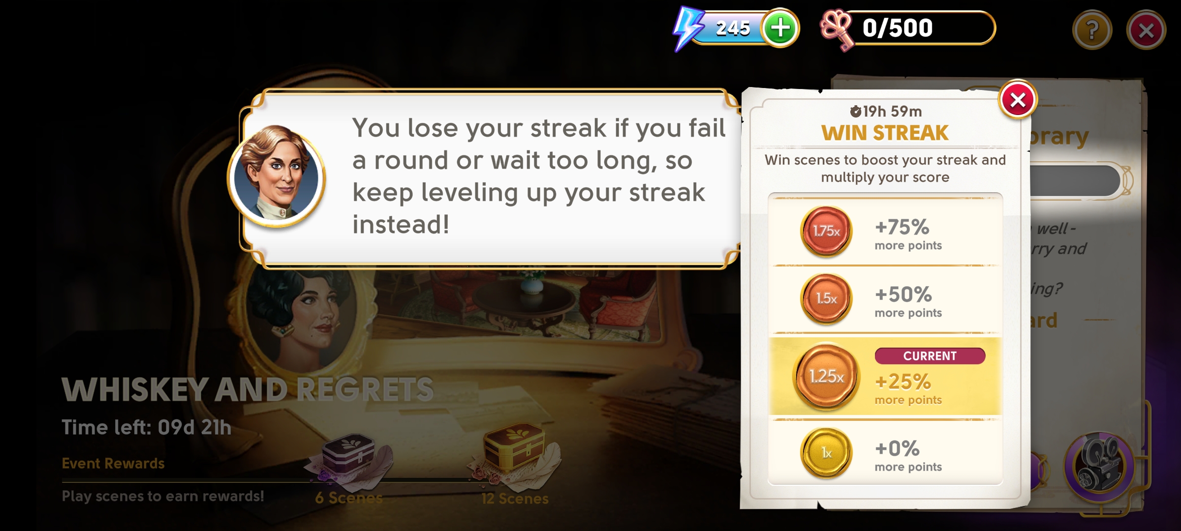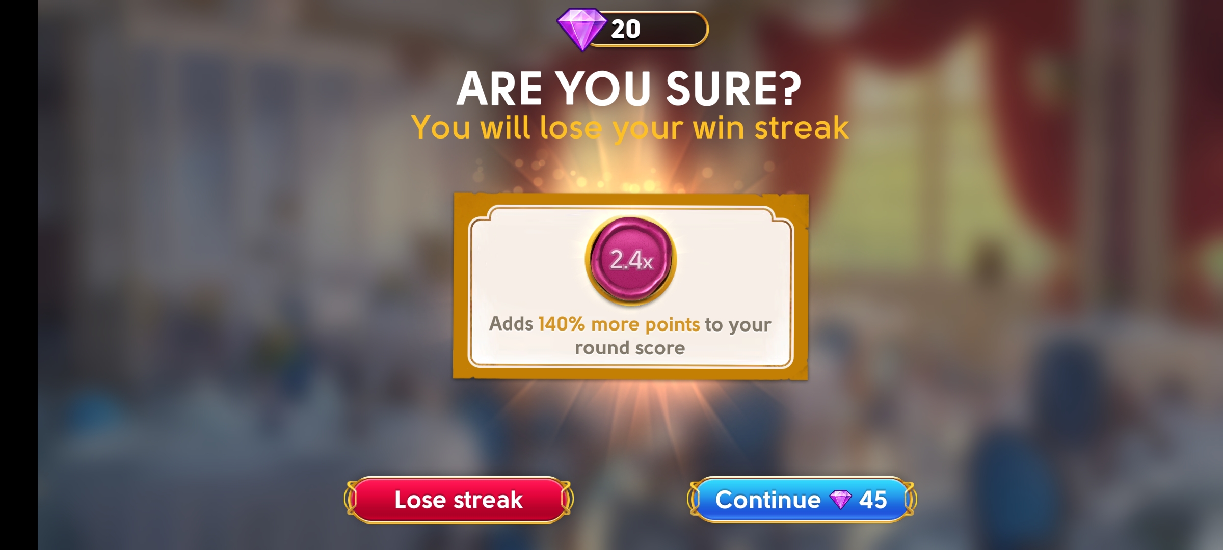 If the timer runs out before you’ve found all the objects in a scene, the streak will return to zero. That’s no trouble, though, because you can always rebuild your win streak, or save it by spending a few Diamonds!