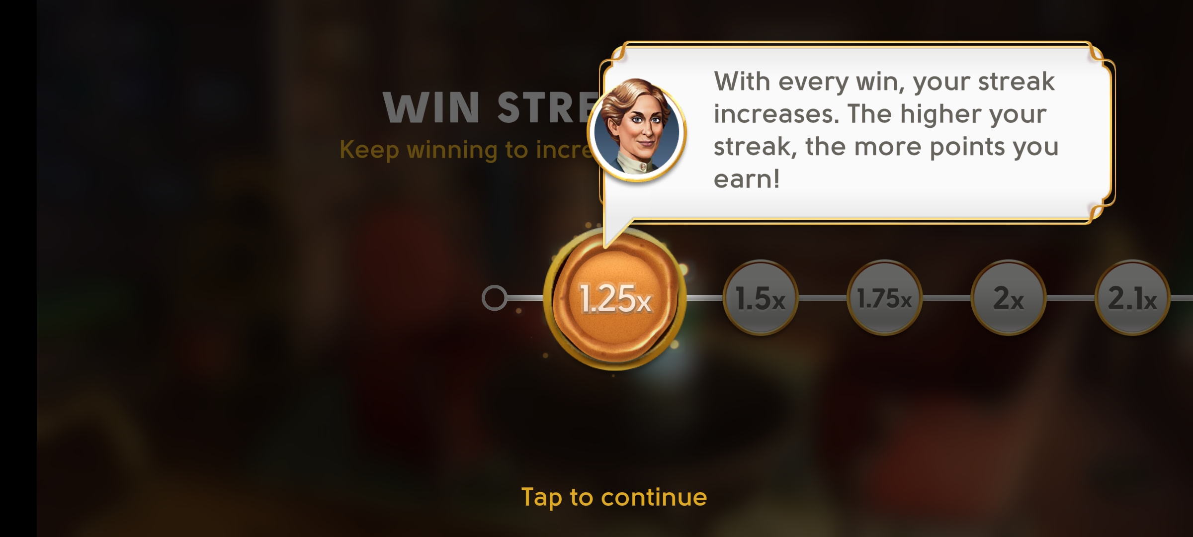 Each successive win levels up your win streak. The higher your win streak level, the higher the multiplier of your score will be! Win streaks are active for only a certain length of time, but each win restarts your win streak timer!