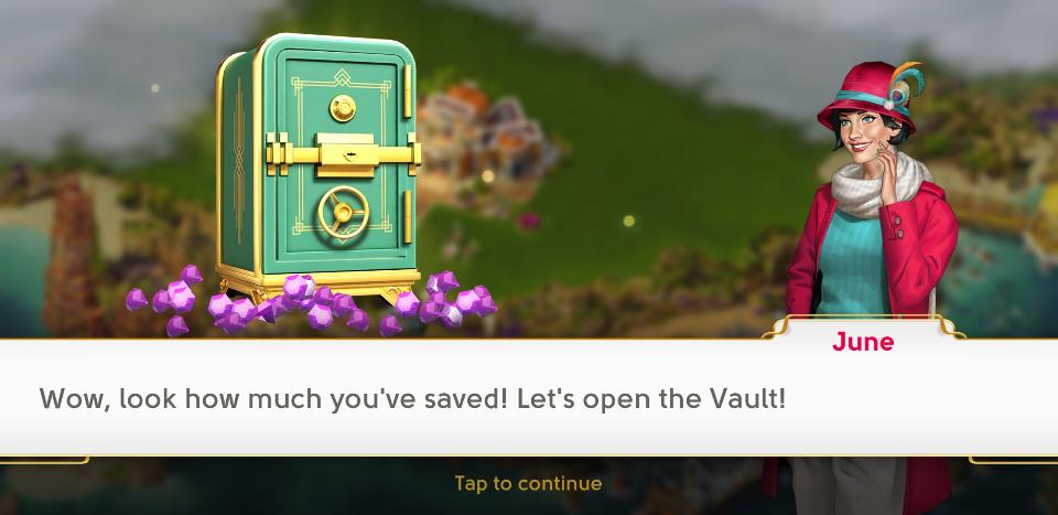 Uh-oh, it looks like the Vault event has already ended… or maybe you already opened the Vault during the event and claimed the awesome rewards. The Vault icon disappears from the main island screen after a purchase or when the event is over.