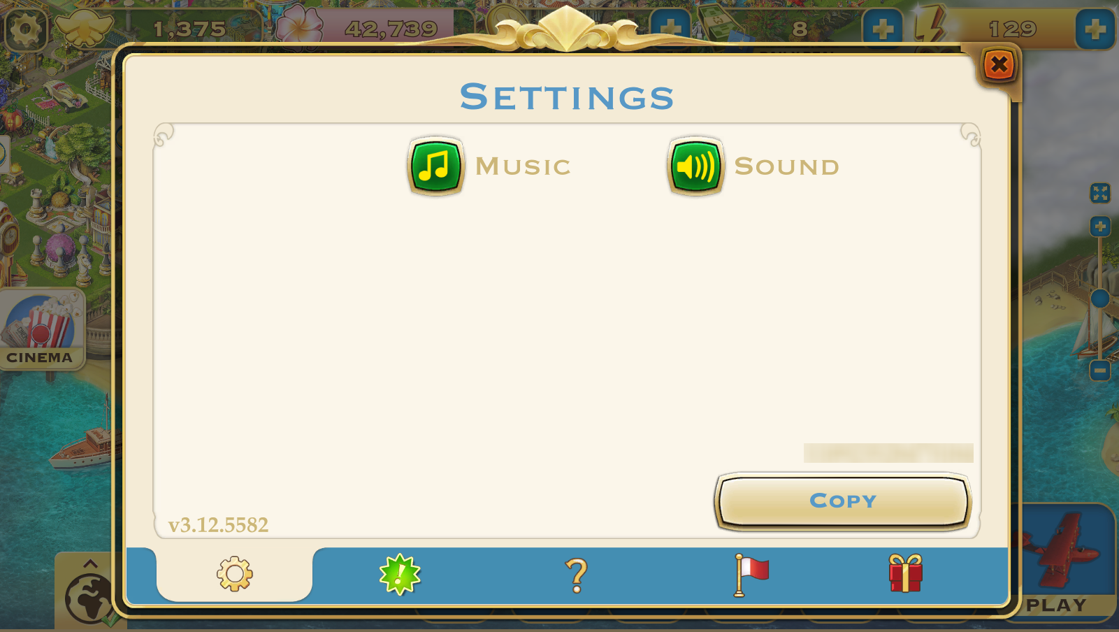 Tap the Settings icon beside your Badge counter on your island view page. Tap the sound and music icons to switch it off.