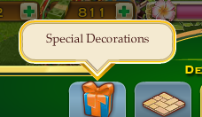 Special decorations can be found in the Shop under the "Special" tab (items marked with an '!'). These special decorations may sometimes be seasonal and only available for a limited amount of time to purchase.