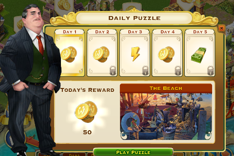 A pop-up will appear when you first enter the game where you are able to see what puzzle is available for that day and what reward you will receive. You will also be able to find the puzzle by tapping on the puzzle icon.