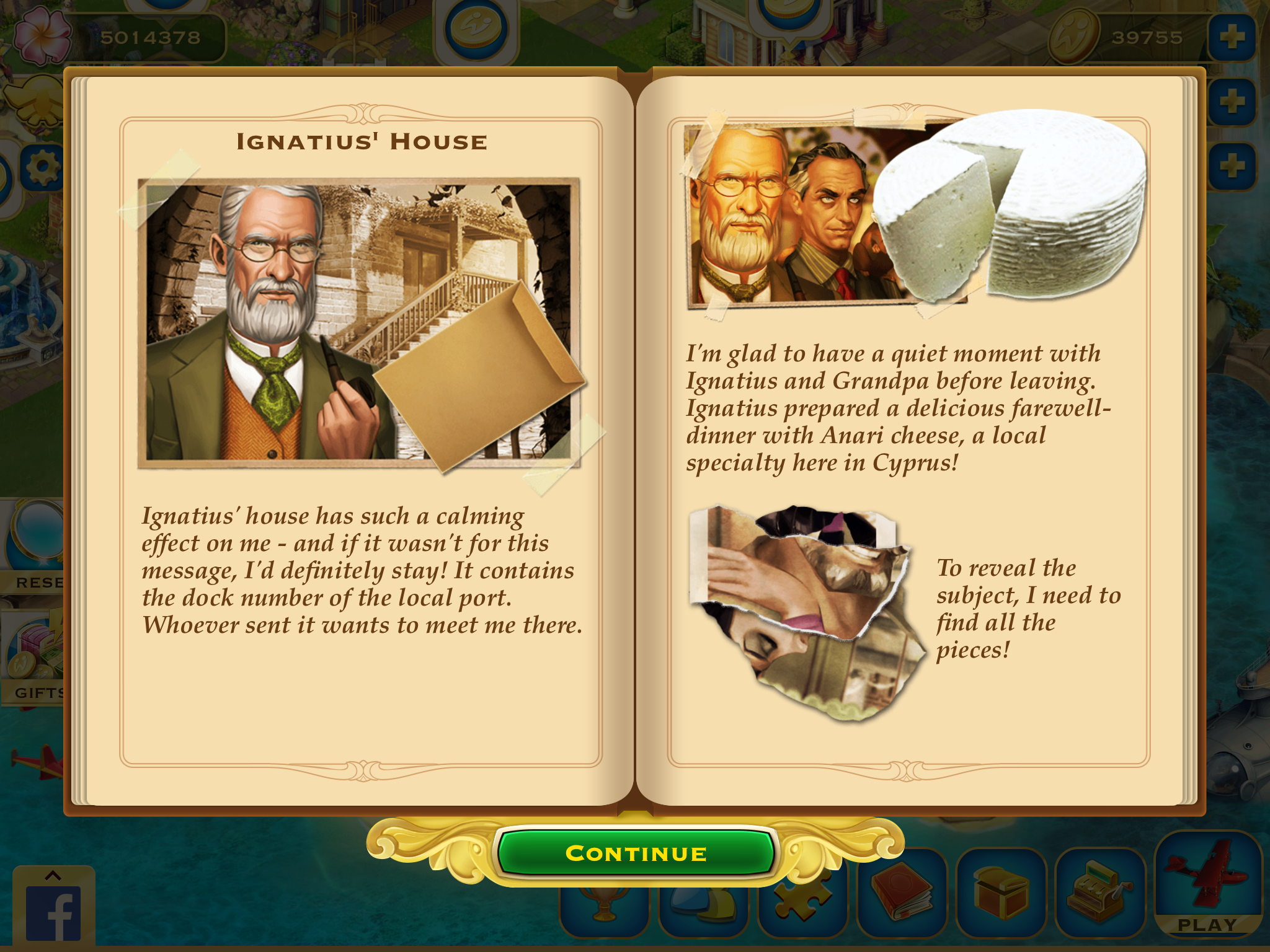 The Journal is where you can unlock more details about the story. After finding all three clues in the five hidden object scenes, you will see a notification on your Journal icon. When you click or tap on it, you will be asked to assemble a puzzle. Once completed, you will receive a gift and an additional story about the chapter.