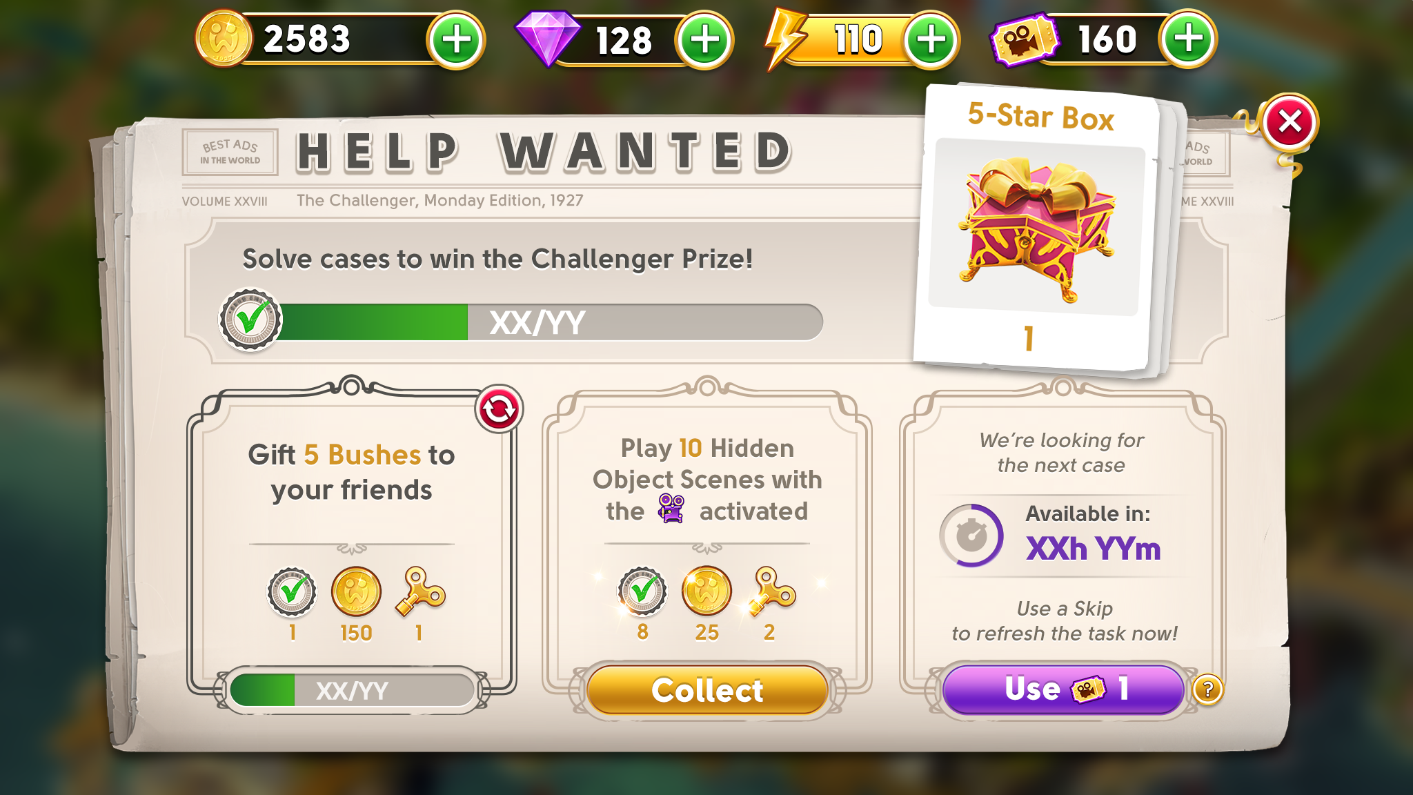 Casos de Se busca ayudaPuedes utilizar una omisión para saltarte la visualización del anuncio y actualizar el temporizador de casos de Se busca ayuda. Solo tienes que tocar el botón morado de Usar una vez y habrá un nuevo caso disponible. ¡Así de sencillo!