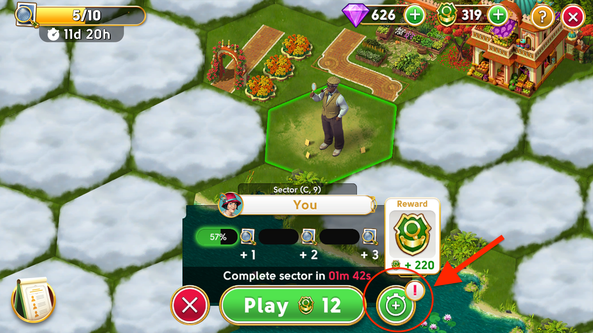 Tutto ciò che devi fare è toccare il pulsante del timer con il segno più sul lato destro del menu settore, e poi toccare il pulsante Chiama rinforzi. Ogni Detective del tuo club riceverà la tua richiesta e avrà l'opzione di inviarti del tempo extra gratuitamente che poi sarà aggiunto al timer del tuo settore.