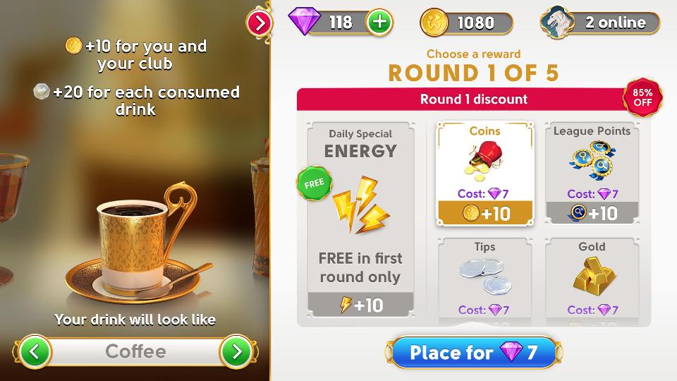 I giocatori che non fanno parte di un club, non incorrono in questa restrizione la prima volta che si uniscono a un club. Invece, la restrizione si applica immediatamente a tutti gli attuali membri di un club che decidono di uscire dal loro club attuale. Ma non temere, anche in questo lasso di tempo puoi comunque offrire tutte le altre bevande al loro normale costo in diamanti!